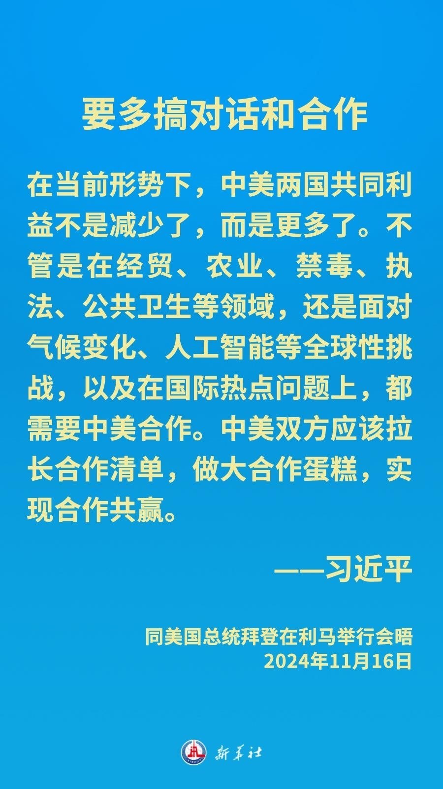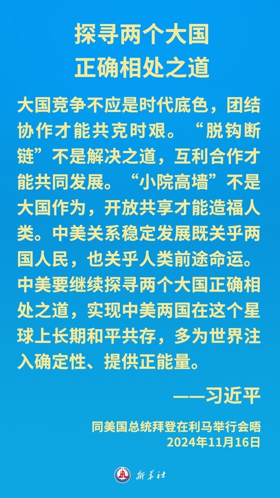 當(dāng)?shù)貢r(shí)間11月16日下午,習(xí)近平主席在秘魯利馬出席亞太經(jīng)合組織領(lǐng)導(dǎo)人非正式會(huì)議期間應(yīng)約同美國總統(tǒng)拜登舉行會(huì)晤。就中美關(guān)系發(fā)展,習(xí)近平主席闡明中方立場——