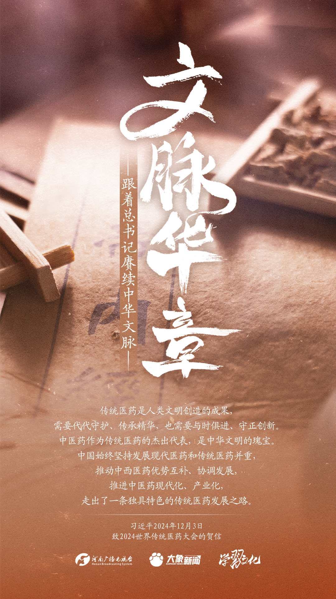 習(xí)近平總書記高度重視中華優(yōu)秀傳統(tǒng)文化的繼承和弘揚。2024年,總書記一如既往,念茲在茲。在赴地方考察、主持召開重要會議等眾多場合,多次對傳承發(fā)展中華優(yōu)秀傳統(tǒng)文化作出重要講話重要指示。大象新聞邀您一起,跟著總書記賡續(xù)中華文脈,推動中華優(yōu)秀傳統(tǒng)文化創(chuàng)造性轉(zhuǎn)化和創(chuàng)新性發(fā)展,在新的起點上繼續(xù)推動文化繁榮、建設(shè)文化強(qiáng)國、建設(shè)中華民族現(xiàn)代文明。