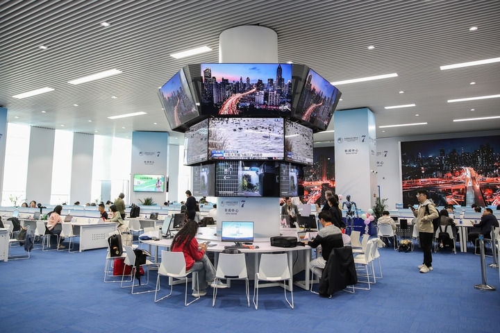 2024年11月8日,媒體記者在第七屆進(jìn)博會(huì)新聞中心工作。新華社發(fā)(常能嘉 攝)
