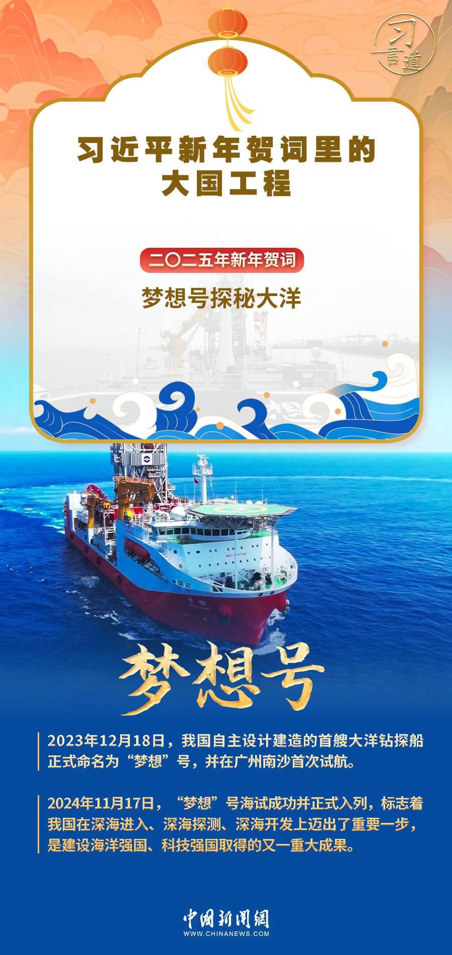 習(xí)近平主席在二〇二五年新年賀詞中,為中國人逐夢星辰大海的豪情壯志喝彩。新年之際,讓我們一起重溫習(xí)近平主席在新年賀詞中點(diǎn)贊的大國工程。