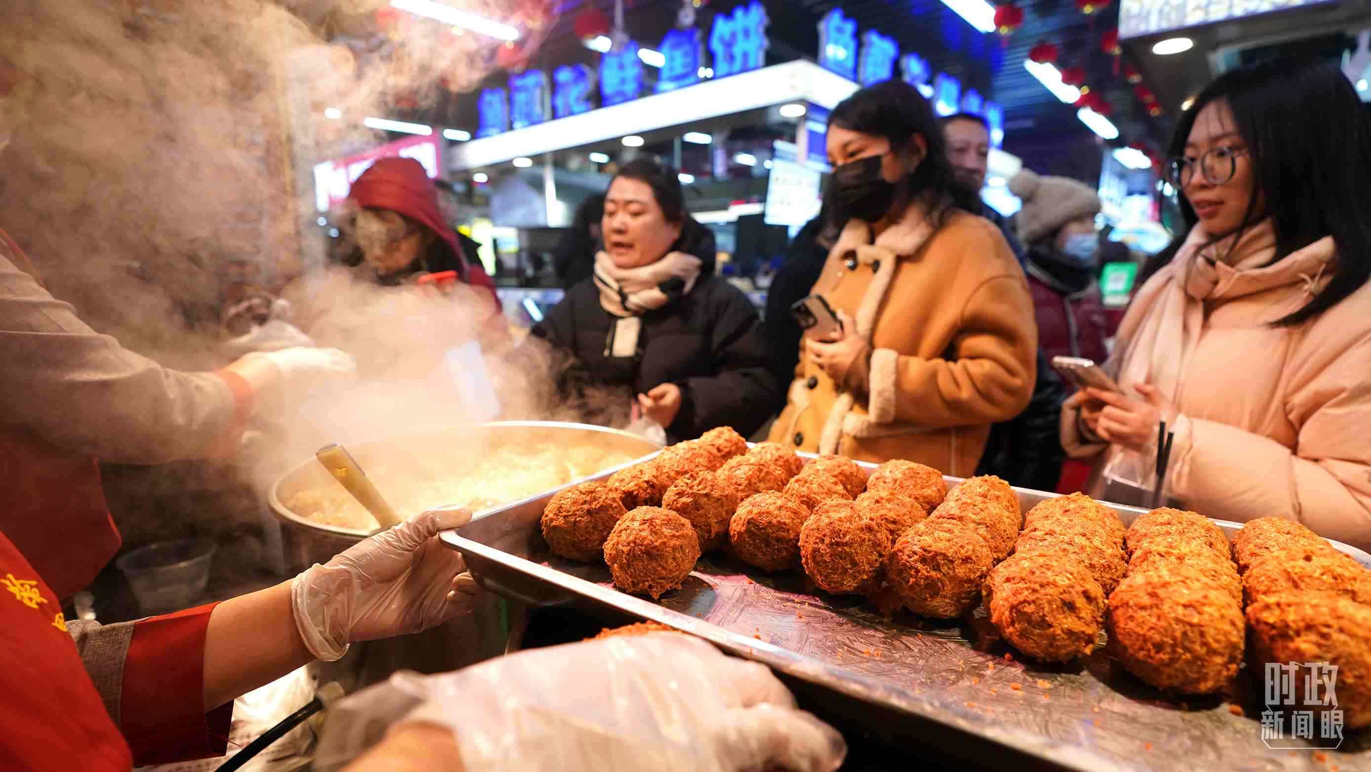 春節(jié)日益臨近,大東副食品商場(chǎng)里,叫賣聲、詢價(jià)聲、滋滋冒油聲、嘭嘭剁餡聲……一派熱鬧非凡。在東北的數(shù)九寒天里,當(dāng)沸騰的煙火氣遇到節(jié)日的喜慶氛圍,寒冬臘月里更顯熱氣騰騰。