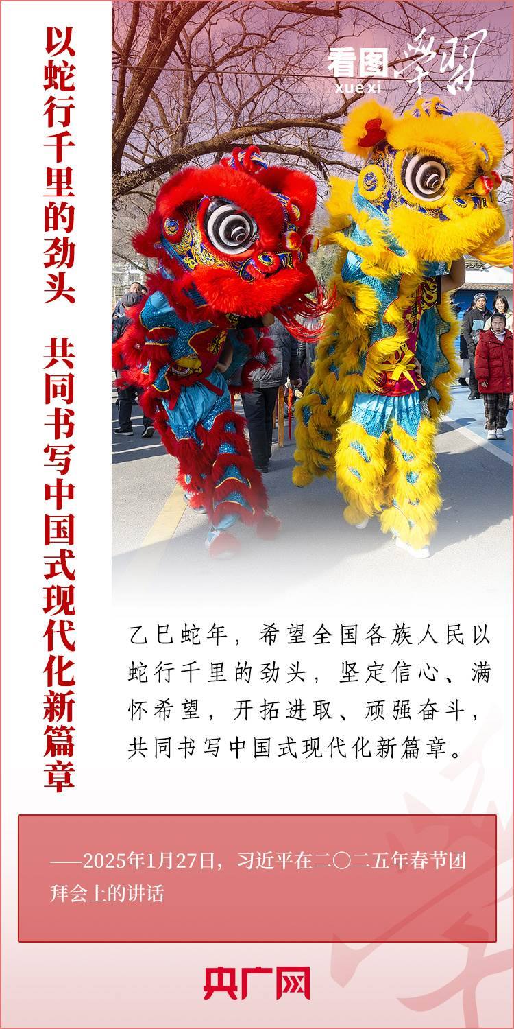 1月27日,中共中央、國務院在北京舉行春節(jié)團拜會,習近平總書記發(fā)表熱情洋溢的講話,向全國各族人民、港澳臺同胞、海外僑胞拜年并致以新春祝福??倳浽谥v話中深情回顧過去一年中國式現(xiàn)代化取得很不平凡的發(fā)展歷程,“希望全國各族人民以蛇行千里的勁頭,堅定信心、滿懷希望,開拓進取、頑強奮斗,共同書寫中國式現(xiàn)代化新篇章。”一起來學習!