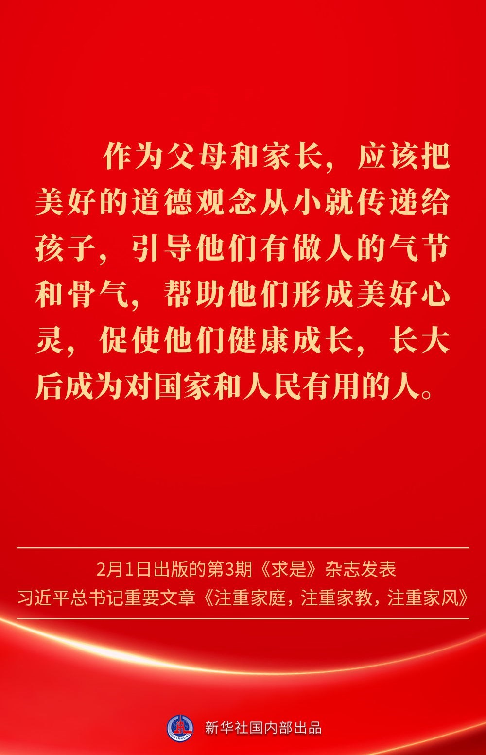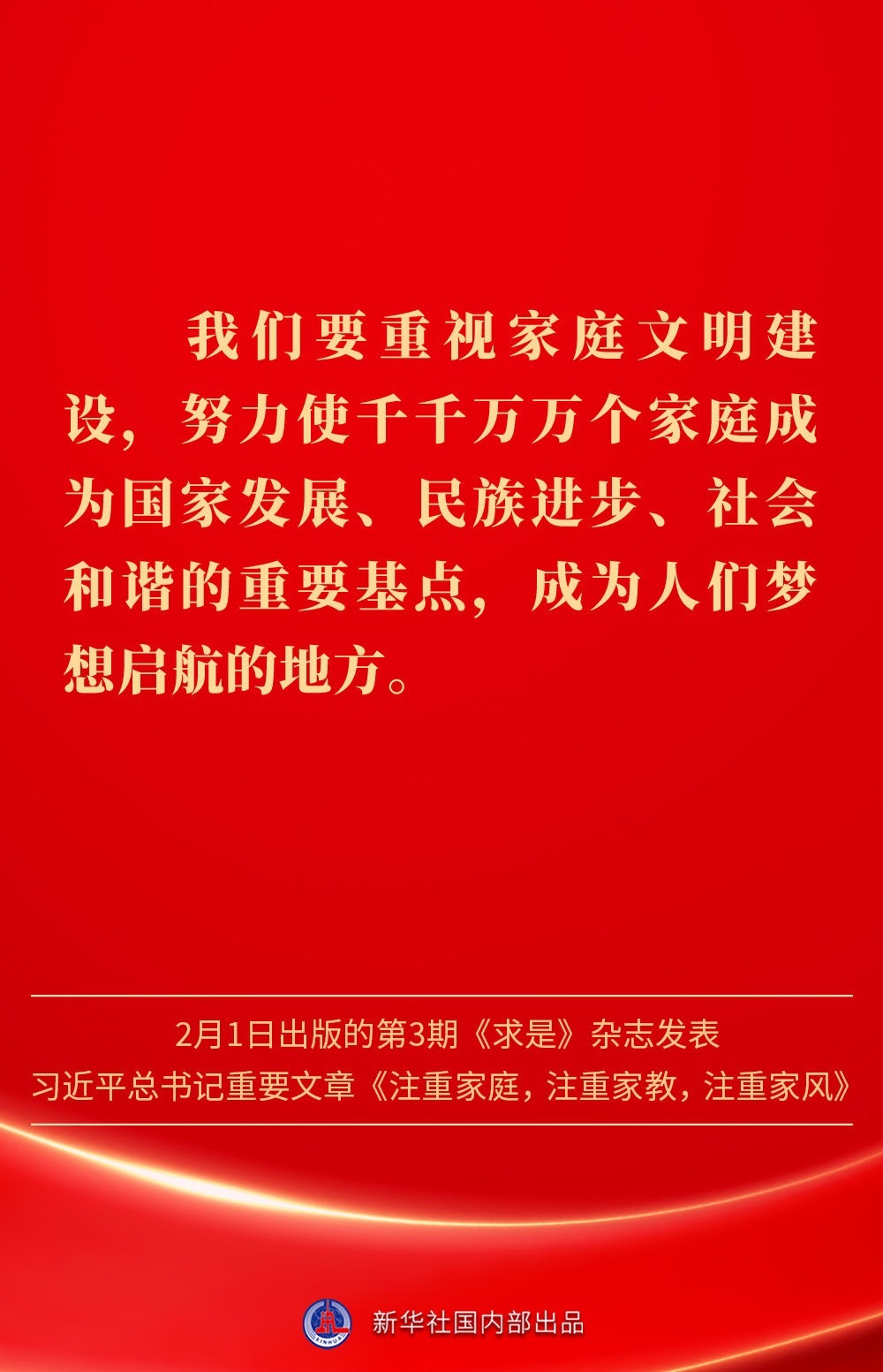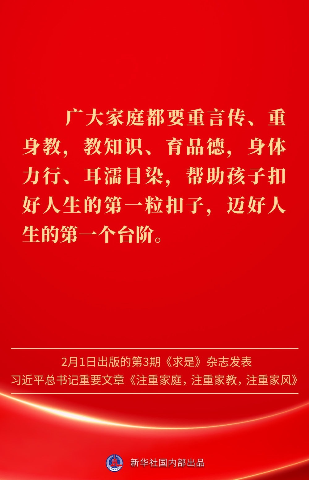 萬家團(tuán)圓共慶新春佳節(jié)之際,2月1日出版的第3期《求是》雜志發(fā)表習(xí)近平總書記重要文章《注重家庭,注重家教,注重家風(fēng)》。為什么要注重家庭、家教、家風(fēng)?如何做好家庭文明建設(shè)?習(xí)近平總書記這樣闡述——
