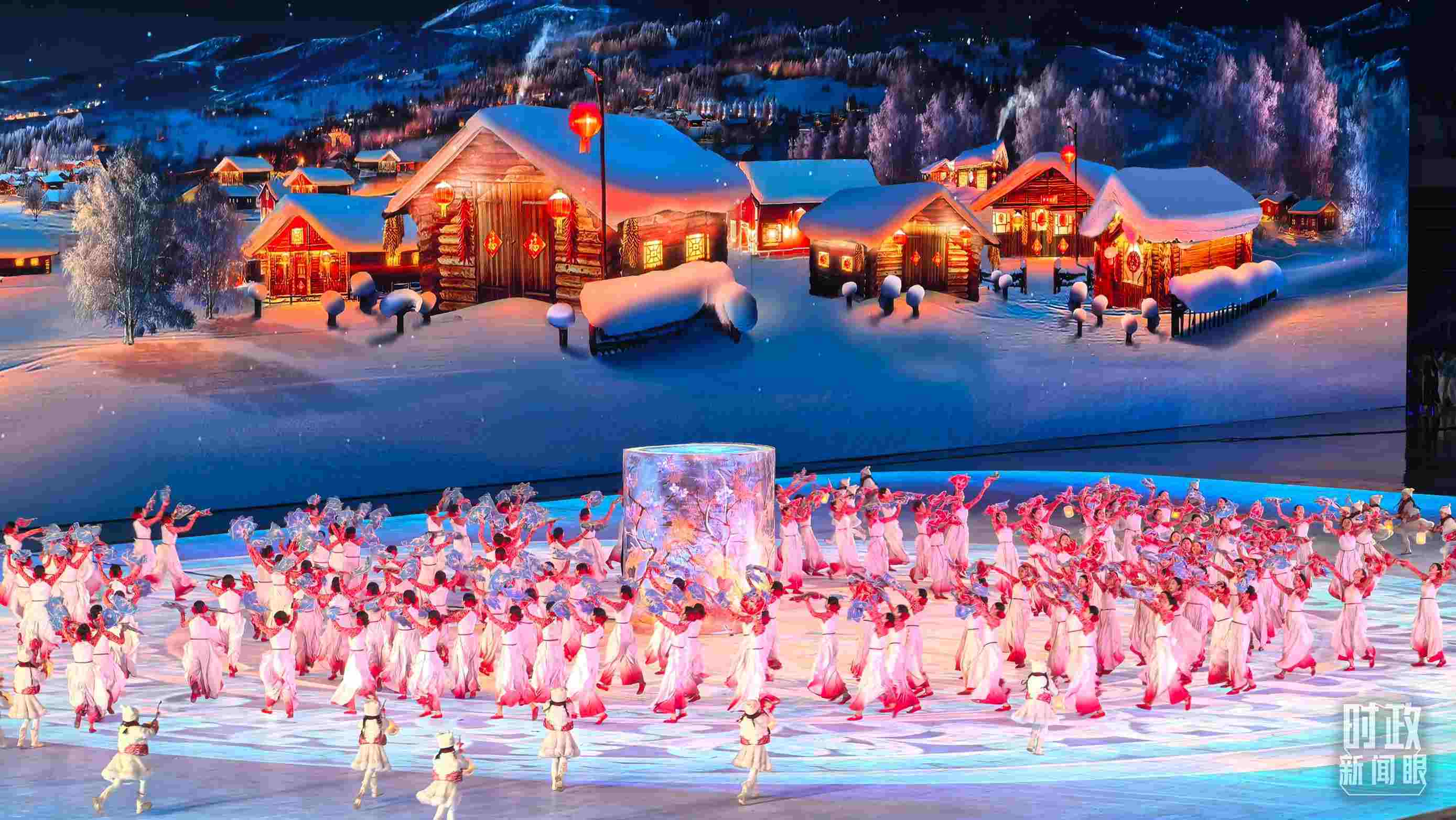 文藝表演分為上篇《熾熱冰雪》、中篇《燃情時(shí)速》、下篇《山高水長(zhǎng)》,通過《長(zhǎng)歌頌冰河》《榮光耀未來(lái)》《馳騁天地間》《璀璨嘉年華》《攜手情久長(zhǎng)》《萬(wàn)里共和鳴》等節(jié)目,展現(xiàn)化“極寒”為“極美”“極燃”“極暖”的意蘊(yùn)。