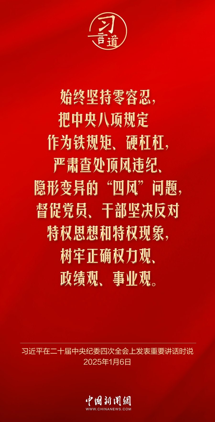 黨中央決定,自2025年全國(guó)兩會(huì)后至7月在全黨開(kāi)展深入貫徹中央八項(xiàng)規(guī)定精神學(xué)習(xí)教育。黨的作風(fēng)就是黨的形象,關(guān)系人心向背,決定黨和國(guó)家事業(yè)成敗。習(xí)近平總書(shū)記高度重視作風(fēng)建設(shè),就貫徹落實(shí)中央八項(xiàng)規(guī)定精神、深化作風(fēng)建設(shè)作出一系列重要論述——