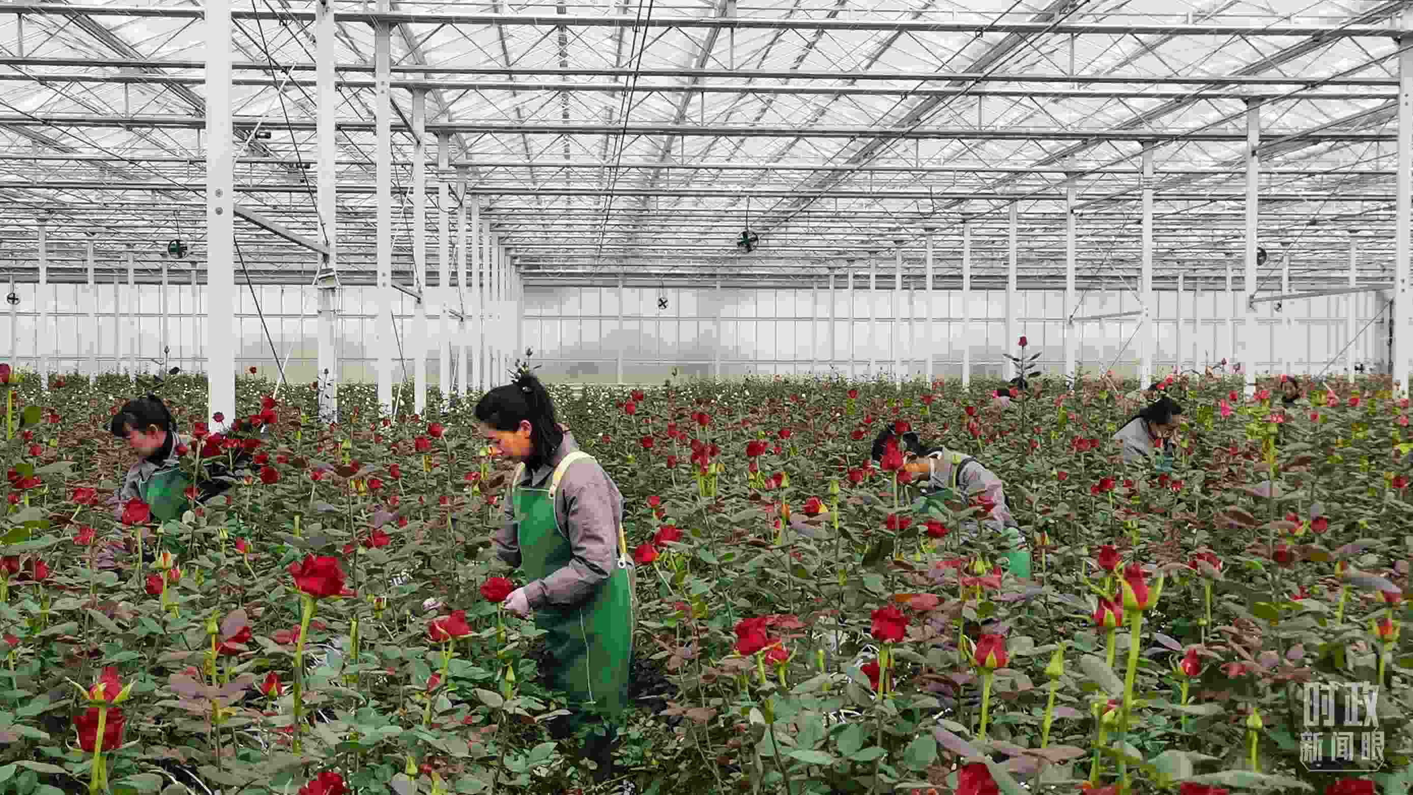 △產(chǎn)業(yè)園的智能溫室大棚里,花開正艷。(總臺(tái)央視記者范一鳴拍攝)