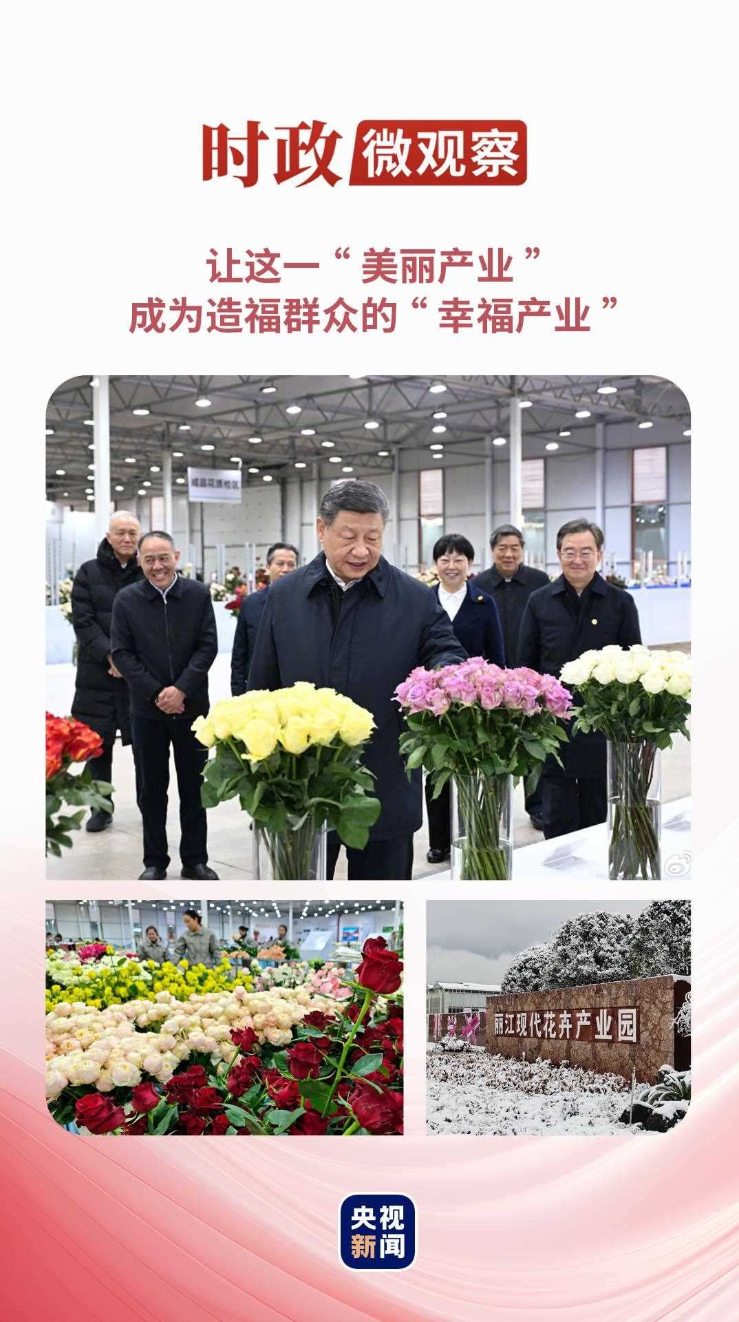 3月19日下午,習(xí)近平總書(shū)記來(lái)到這里考察調(diào)研。當(dāng)?shù)卮迕窀嬖V總書(shū)記,在這里工作,一個(gè)月收入4000多元,旺季可達(dá)7000多元,“種花這個(gè)工作干得特別開(kāi)心”??倳?shū)記高興地說(shuō):“你們這個(gè)事業(yè)搞得很興旺,符合現(xiàn)代農(nóng)業(yè)發(fā)展方向。祝你們的生活像花兒一樣美!”