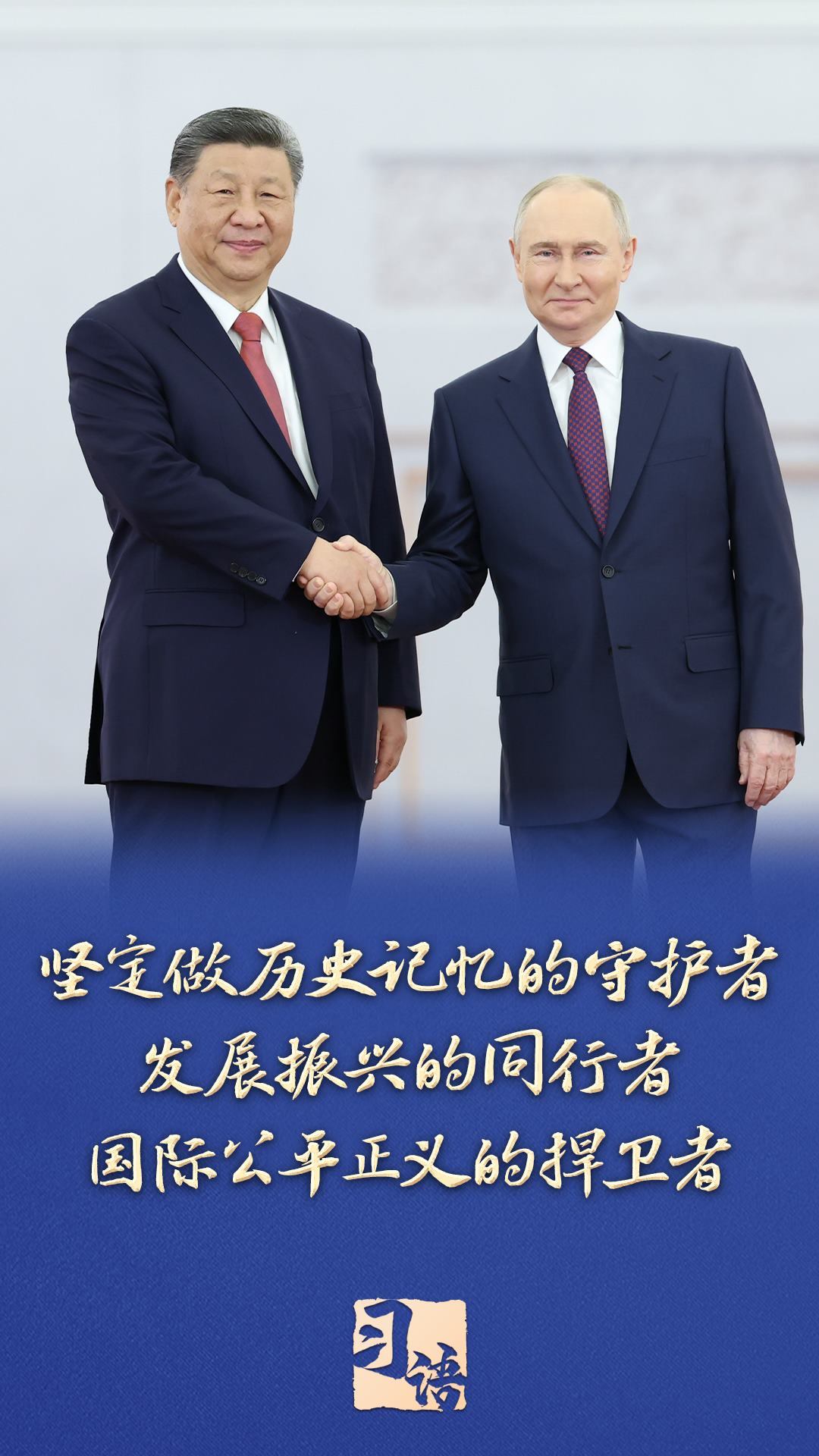 “80年前,中國人民和俄羅斯人民為世界反法西斯戰(zhàn)爭勝利共同作出了不可磨滅的歷史貢獻(xiàn),用鮮血凝成牢不可破的偉大友誼,為兩國關(guān)系高水平發(fā)展奠定了堅實基礎(chǔ)?!?/p>