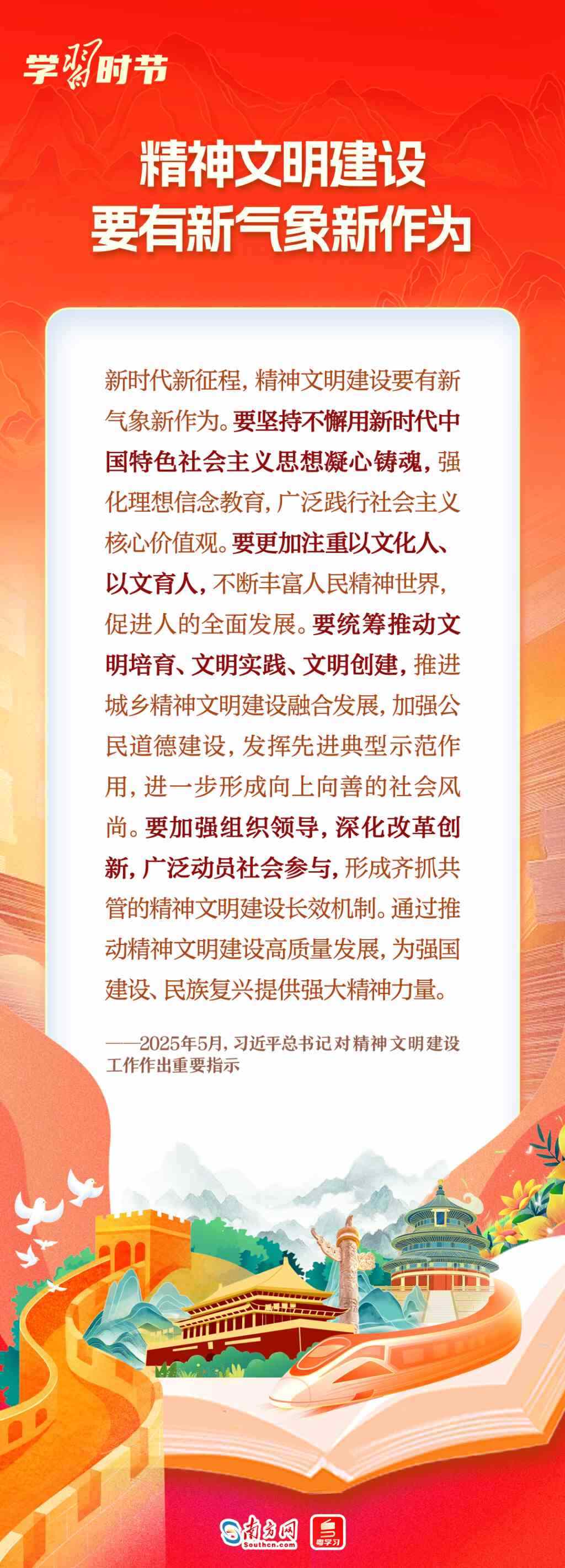 5月23日,2025年全國精神文明建設(shè)表彰大會(huì)召開,會(huì)上傳達(dá)了習(xí)近平總書記對精神文明建設(shè)工作作出的重要指示。習(xí)近平總書記對精神文明建設(shè)工作有哪些最新指示?一起來學(xué)習(xí)!