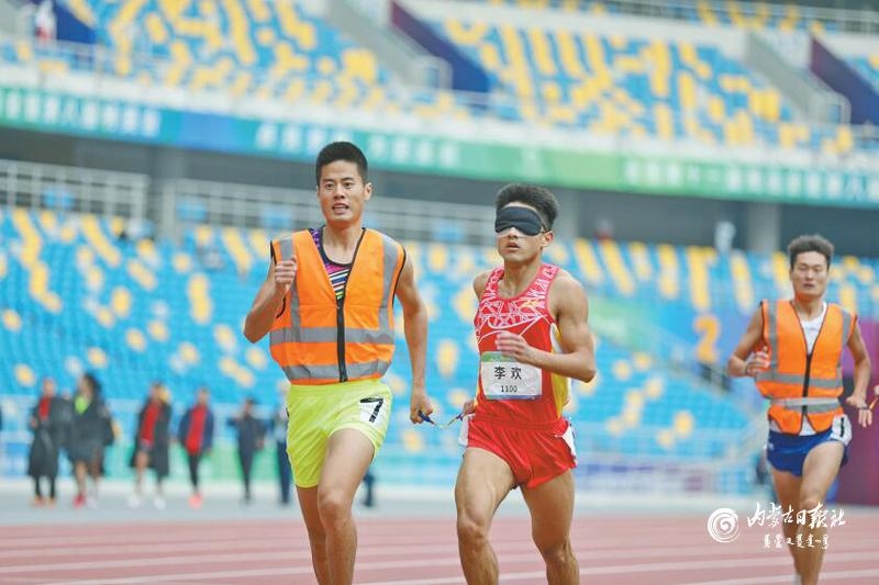 10月27日,內(nèi)蒙古盲人運(yùn)動(dòng)員李歡同他的領(lǐng)跑員楊愛(ài)瑞獲得男子800米t11級(jí)銅牌。
