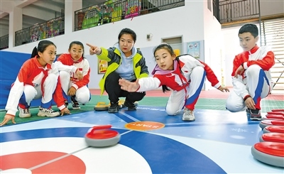 呼和浩特市賽罕區(qū)錫林南路小學分校學生體驗旱地冰壺運動。記者 王磊 攝