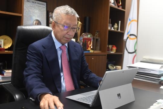 1月25日,國(guó)際奧委會(huì)副主席黃思綿在新加坡接受采訪。新華社發(fā)(鄧智煒攝)