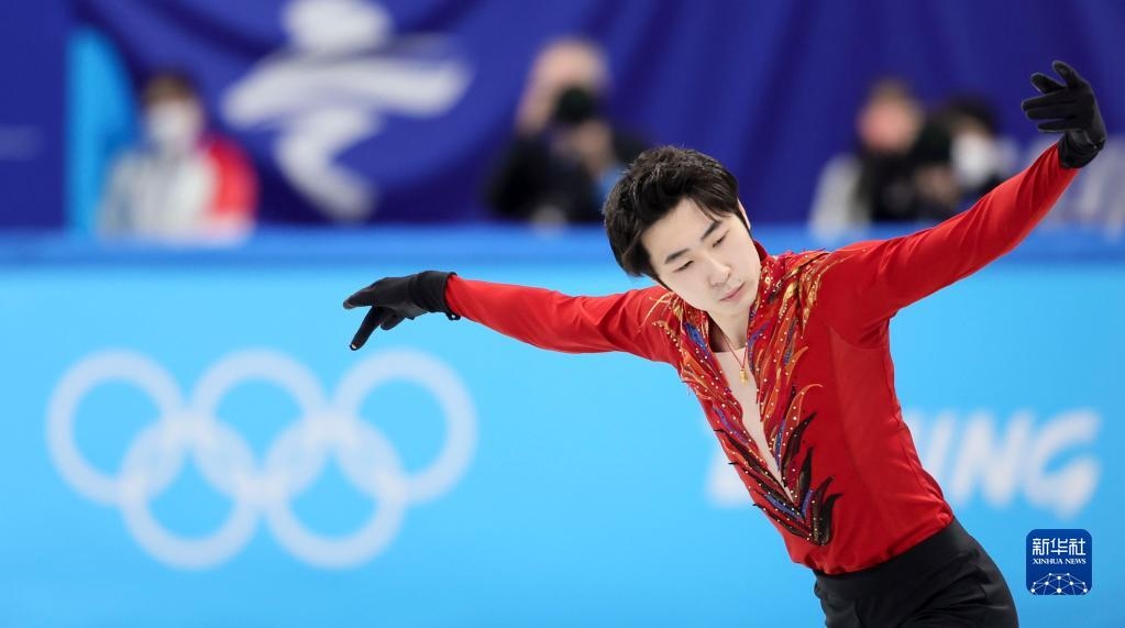 2月10日,中國隊選手金博洋在花樣滑冰男子單人滑自由滑比賽中。新華社記者蘭紅光攝
