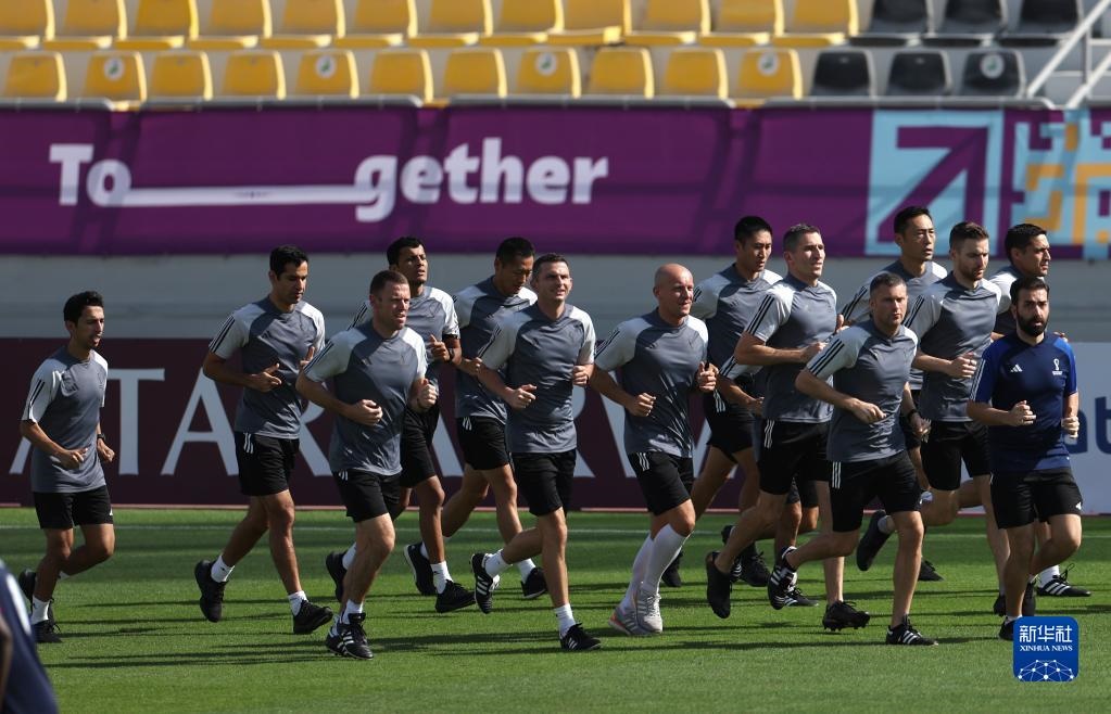 11月18日,國(guó)際足聯(lián)裁判委員會(huì)主席皮耶路易吉·科利納(后右)觀看訓(xùn)練。新華社記者 賈浩成 攝