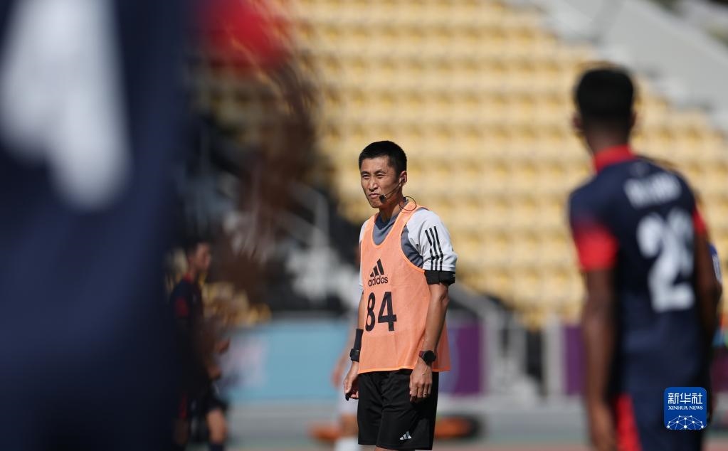 11月18日,中國(guó)裁判馬寧(右一)在訓(xùn)練中。新華社記者 賈浩成 攝