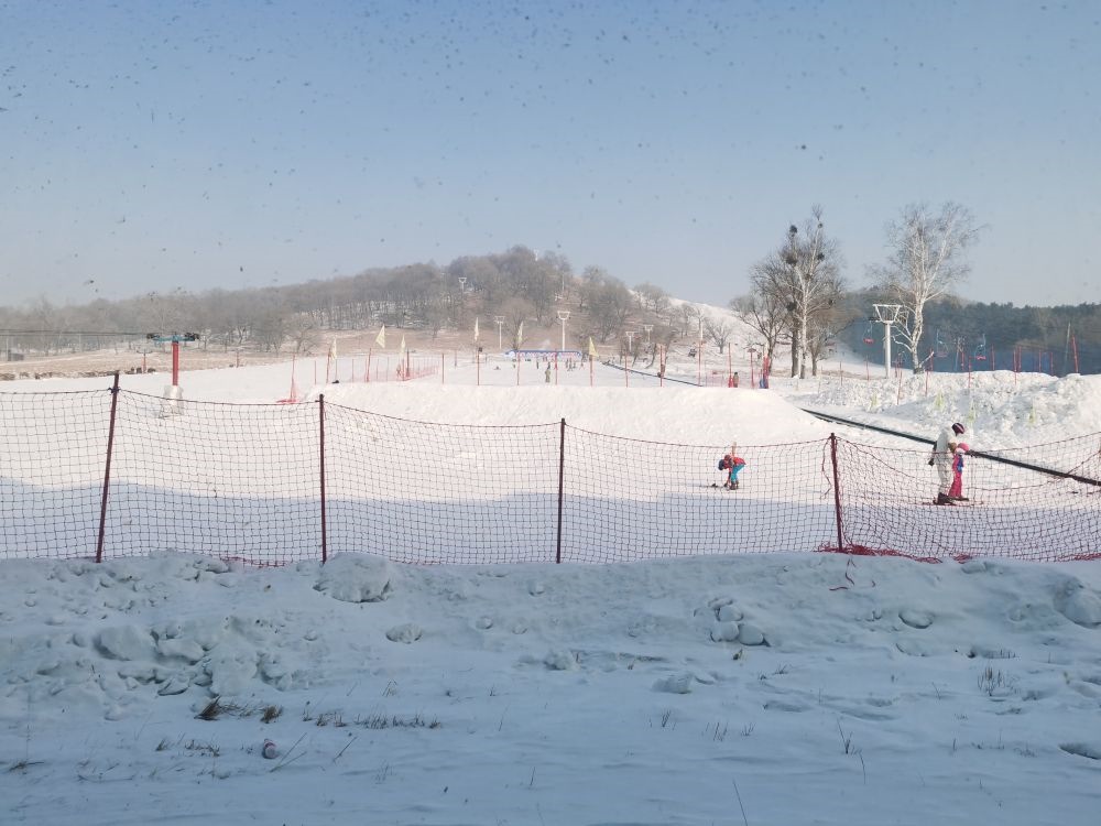 鹿群不遠(yuǎn)處,便是平山神鹿滑雪場,雪道上不少兒童正在這里進(jìn)行研學(xué)活動(dòng)。