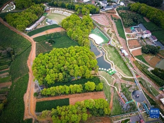 這是3月29日拍攝的諸暨市楓橋鎮(zhèn)陽春村陽春山月游樂度假村(無人機照片)。當?shù)赝ㄟ^閑置荒山土地流轉(zhuǎn)發(fā)展鄉(xiāng)村旅游,幫助當?shù)卮迕窈痛寮w增收。