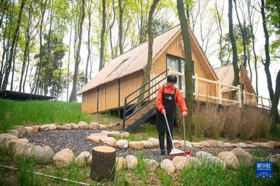 3月29日,諸暨市楓橋鎮(zhèn)陽春村村民在陽春山月游樂度假村內(nèi)工作。當?shù)赝ㄟ^閑置荒山土地流轉(zhuǎn)發(fā)展鄉(xiāng)村旅游,幫助陽春村60名村民實現(xiàn)在家門口就業(yè)增收。