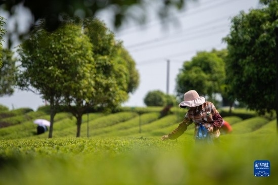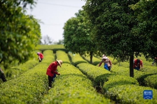 4月11日,在長(zhǎng)沙望城烏山貢茶基地,茶農(nóng)在采摘春茶。