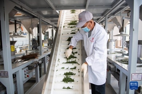 4月11日,在長(zhǎng)沙望城烏山貢茶基地,工人抽查茶葉品質(zhì)。