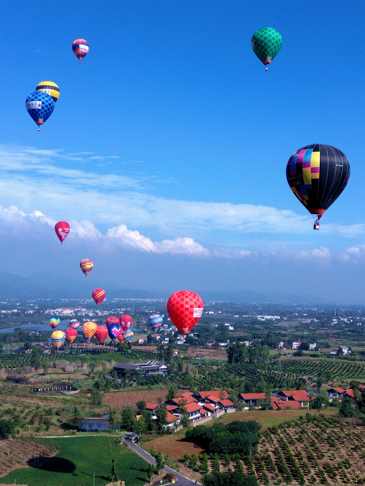 隨著開幕儀式的推進(jìn),30支熱氣球依次完成點(diǎn)火、充氣,在歡呼聲中緩緩升空。紅黃藍(lán)綠的熱氣球與郁郁蔥蔥的柑橘園、錯(cuò)落有致的川西民居相映成趣,構(gòu)成一幅絕美畫卷。據(jù)了解,此次全國(guó)熱氣球精英賽(四川金堂站)作為活動(dòng)核心賽事,將在10月15日-19日期間開展游蕩華爾茲、定點(diǎn)投靶、肘形飛行等10余項(xiàng)專業(yè)競(jìng)技項(xiàng)目,最讓人期待的是本次賽事將熱氣球飛躍龍泉山作為了長(zhǎng)距離飛行的競(jìng)賽科目,這將是熱氣球首次飛越龍泉山。屆時(shí),參賽選手在比賽的同時(shí)還可以在空中觀賞龍泉山脈、千里沱江、絕美古剎等景觀。