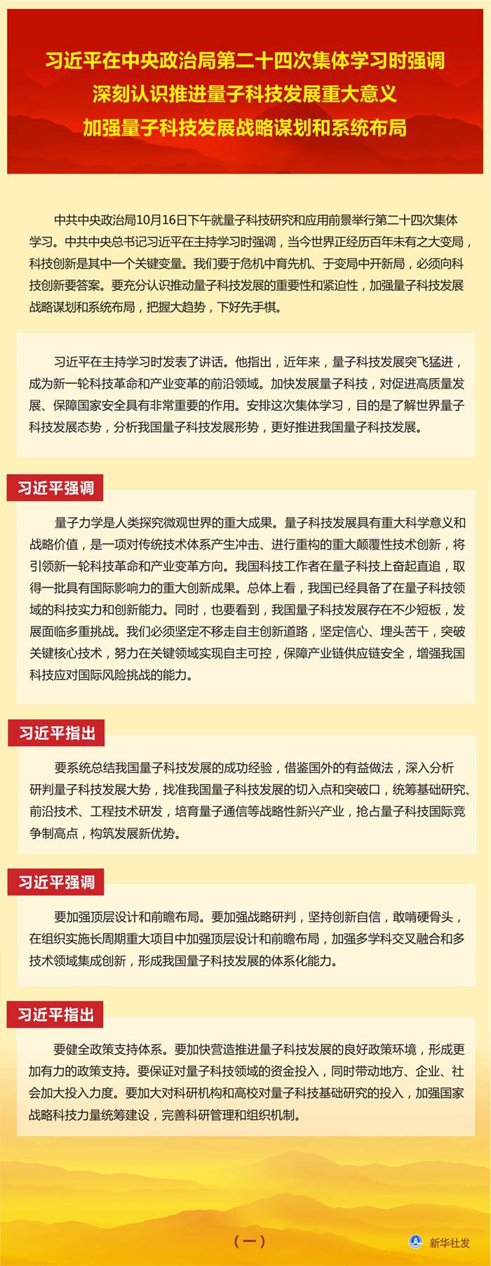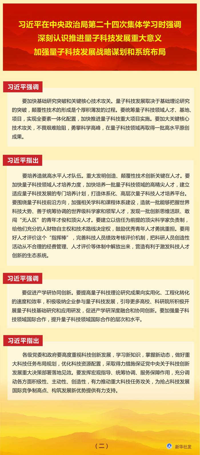 習(xí)近平在中央政治局第二十四次集體學(xué)習(xí)時強(qiáng)調(diào) 深刻認(rèn)識推進(jìn)量子科技發(fā)展重大意義 加強(qiáng)量子科技發(fā)展戰(zhàn)略謀劃和系統(tǒng)布局