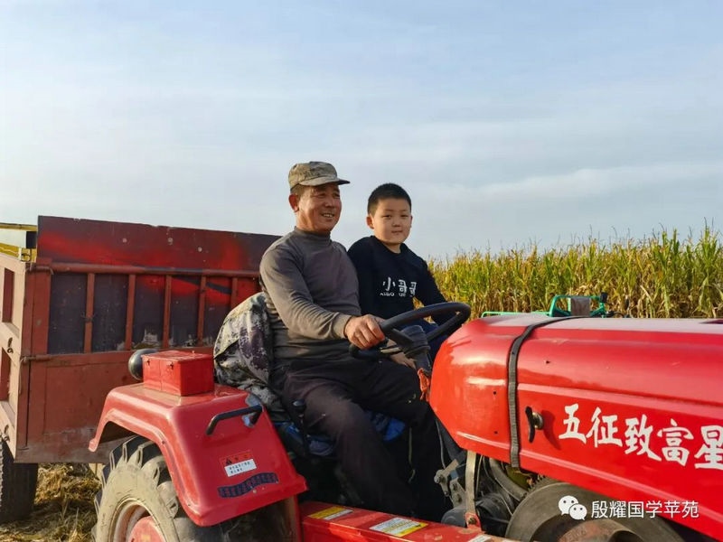 父親讓曈曈接地氣的愿望實現(xiàn)了,長得越來越壯實的曈曈真是打心眼喜歡上了農(nóng)村,喜歡看叔叔大爺們是如何勞動的。春天澆地的時候,他跟上我的發(fā)小利利到地里去,手里拿上一張鐵鍬學(xué)著去攏堰堤;秋收的時候他爬上了丁補元駕駛的收割機,感受農(nóng)民們收割玉米的喜悅;接羔的時候,他又鉆進利軍家的羊群里,抱著出生沒有幾天的小羊羔,給小羊羔喂牛奶……春節(jié)前的一兩天是他最忙的時候:一會跟上大爹貼春聯(lián),一會跟上茹義大爺掛紅燈,忙得不亦樂乎。前一段時間回村里他又要跟上利軍大爺出村放羊去,又要跟上茹義大爺去種玉米,在城里他是見識不到這些的。