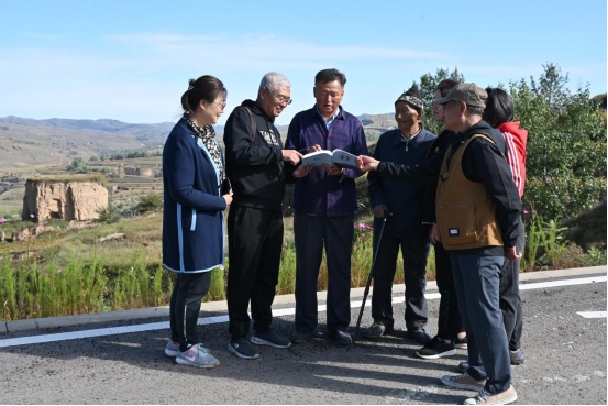 為了助推清水河縣全力推進長城國家文化公園項目建設,呼和浩特市長城科普學會會員們到達馬頭山下的小元峁段明長城、川峁村鴻門口馬市遺址、水泉鎮(zhèn)紅(鴻)門口地下長城博物館后,顧不得旅途勞頓和登山困乏,立即開展考察工作、拍照、察看、比對、討論,將學會出版的《長城烽火》《中國歷代長城詩大全》《情系長城》等書籍贈送給水泉鎮(zhèn)政府,為智庫專家高振清贈送聘書,聽他講解鴻門口的歷史。