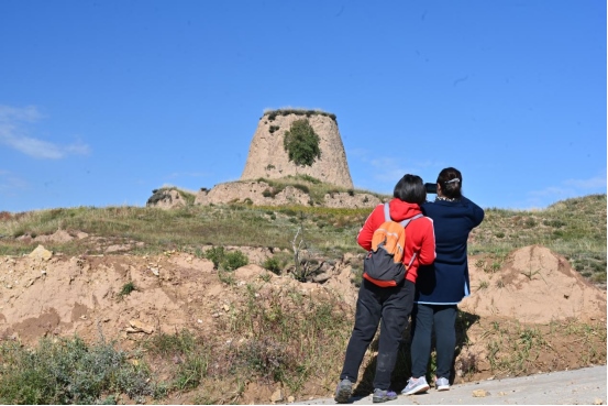 2022年9月,地處蒙晉交界的內蒙古自治區(qū)清水河縣與山西省偏關縣馬頭山下陰雨連綿。20日,一個難得的艷陽天,碧空如洗,雨后的青草披珠戴露,綠意盎然,沉睡的古堡終于悠悠蘇醒,昔日空洞的瞭望孔似乎生機煥發(fā),象古堡的眼睛,凝神注視遠方,歡迎尊貴的客人,也是盼望已久的娘家人。