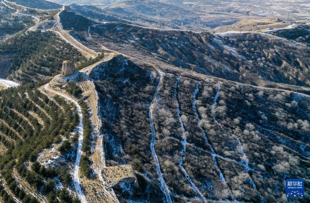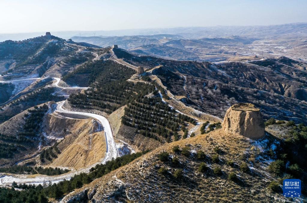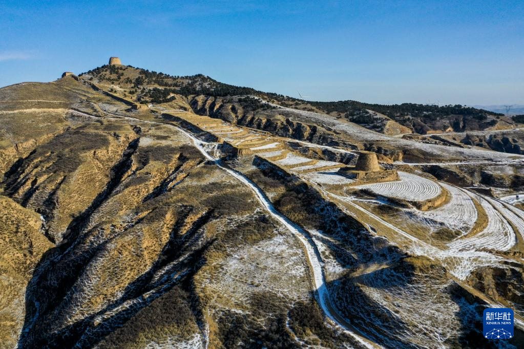 這是1月16日拍攝的內(nèi)蒙古清水河縣栜木塔長城(無人機(jī)照片)。