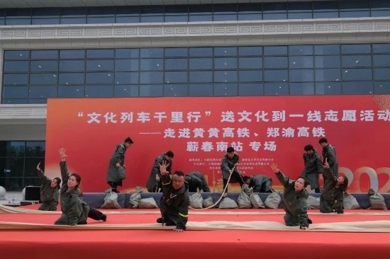 在黃黃高鐵蘄春南站、鄭渝高鐵興山綜合維修車間、浩吉鐵路襄州運營維修段舉行的三場活動亦是精彩紛呈。由牛悅敏、候孟陽、白石洋、李祥東、白愛潔、徐寧、王曉萍、周政輝、胡啟文、朵蘭、王瑛、蔣輝、以及幾十位武漢局集團公司文藝志愿者的精彩節(jié)目輪番上演。優(yōu)美動聽的歌舞、經(jīng)典優(yōu)美的京劇、詼諧幽默的大鼓、驚險刺激的雜技,還有《朱家河上的守堤人》等情景劇感人至深,活動現(xiàn)場濃厚的文藝氛圍感染著每一位觀眾。本次活動惠及鐵路沿線車務(wù)、機務(wù)、工務(wù)、供電、電務(wù)等系統(tǒng)職工和高鐵列車旅客3500余人。