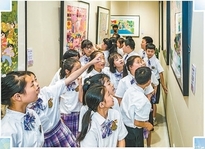 學生們在余東村美術(shù)館參觀。李 東攝