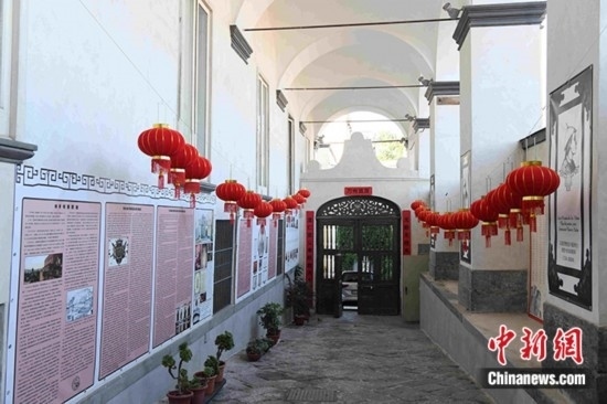 圖為6月17日拍攝的“中國(guó)學(xué)院”舊址,門(mén)廊兩側(cè)都懸掛著中式紅燈籠,有馬國(guó)賢和那不勒斯東方大學(xué)變遷史的展覽。 中新社記者 李洋 攝
