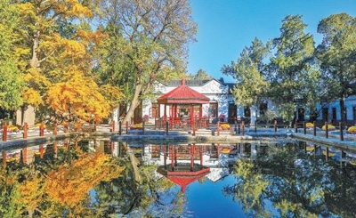 雙清別墅內(nèi)有一座六角紅亭,當(dāng)年毛澤東在工作之余,會到亭子里坐坐。1949年4月的一天,毛澤東正在六角紅亭閱讀刊載“南京解放”消息的報紙。在場的攝影師徐肖冰打開照相機,按下快門,一張具有歷史意義的照片誕生了。如今,這座亭子里的藤桌、瓷鼓,都根據(jù)衛(wèi)士長李銀橋的回憶進行了復(fù)原。