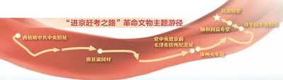 2024年3月,由京冀兩地文物局聯(lián)手打造的“進京趕考之路”革命文物主題游徑全線貫通。主題游徑包括西柏坡中共中央舊址、河北省唐縣淑閭村、黨中央進京前毛澤東住所紀(jì)念址、涿州火車站、清華園車站舊址、頤和園益壽堂、雙清別墅7處重要點位,展現(xiàn)了京冀兩地紅色文物保護利用的最新成果。主題游徑開通一年來,北京河北兩地持續(xù)合作,全面強化沿線點位文物保護利用,攜手帶領(lǐng)游客重溫初心、感悟初心。