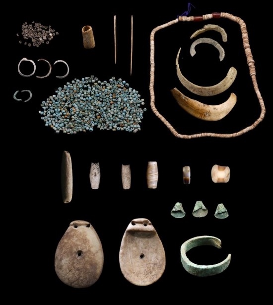 西藏康馬瑪不錯(cuò)遺址出土的第二期遺物(石質(zhì)、骨質(zhì)、金屬裝飾品,骨針、滑石珠、紅玉髓、玻璃珠等)。(全國十大考古新發(fā)現(xiàn)活動(dòng)辦公室供圖)