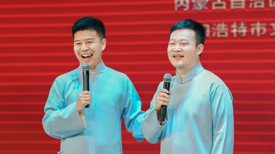 演出在舞步奔放、節(jié)奏明快的群舞《輝煌》中拉開帷幕,文藝志愿者們各展才藝,節(jié)目形式多樣,涵蓋了歌舞、小品、雜技、二人臺(tái)、呼麥等多種藝術(shù)形式。相聲《開心一刻》幽默詼諧,演員妙語連珠,引得觀眾笑聲不斷;小品《一路風(fēng)情走青城》聚焦日常點(diǎn)滴,用接地氣的故事展現(xiàn)呼市新風(fēng)貌,讓人倍感親切;歌曲《請到草原來》《歌在飛》《歌游內(nèi)蒙古》,文藝志愿者們用嘹亮歌聲傳遞對(duì)家鄉(xiāng)、對(duì)祖國的熱愛;二人臺(tái)對(duì)唱《掛起紅燈拜新年》、呼麥《馬群贊》飽含深情;藝體表演《武動(dòng)乾坤》、雜技《鍋碗瓢盆交響曲》創(chuàng)意十足,現(xiàn)場驚嘆聲此起彼伏;獨(dú)舞《雄鷹》以剛勁的肢體語言,詮釋鷹擊長空磅礴氣勢;《舞蹈美草》用輕盈的舞步展現(xiàn)原野的律動(dòng);最后,全體演員與觀眾齊聲合唱《我的祖國》,將演出推向最高潮。精彩的表演贏得了現(xiàn)場400多名觀眾的陣陣掌聲和歡呼聲,氣氛熱烈非凡。