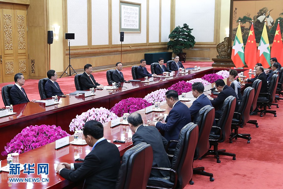 習(xí)近平指出,中緬“胞波”情誼深厚,共飲一江水,是命運(yùn)共同體。新形勢下,中方愿同緬方弘揚(yáng)傳統(tǒng)友誼,密切互利合作,推動(dòng)中緬關(guān)系不斷向前發(fā)展。雙方要結(jié)合明年中緬建交70周年慶?;顒?dòng),積極開展各層級交往和人文交流,將兩國務(wù)實(shí)合作更多向民生領(lǐng)域傾斜,不斷夯實(shí)中緬友好的民意基礎(chǔ)。中方支持緬方發(fā)展經(jīng)濟(jì)、改善民生,贊賞緬甸政府推進(jìn)國內(nèi)和平和解的努力。中方愿同緬方共同維護(hù)中緬邊境安全穩(wěn)定,切實(shí)保障邊民安全和正常秩序。