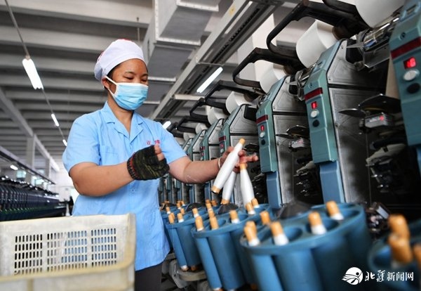 2月18日,已返崗的工人戴著口罩在福建省福州市長樂區(qū)正隆紡織有限公司紡織車間里工作。新華社記者 魏培全 攝