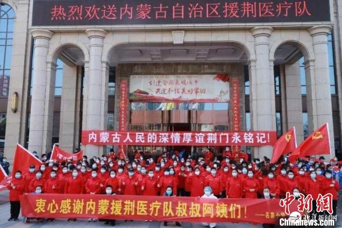 2020年春節(jié)期間,新冠肺炎疫情暴發(fā),1月28日,由141名醫(yī)護(hù)人員組成的內(nèi)蒙古首支醫(yī)療隊(duì)出發(fā)奔赴湖北荊門(mén),對(duì)荊門(mén)市、京山市、鐘祥市和沙洋縣展開(kāi)醫(yī)療救治工作;2月15日,內(nèi)蒙古再次派出由20名醫(yī)護(hù)人員組成的第四批醫(yī)療隊(duì)赴荊門(mén)補(bǔ)充支援。