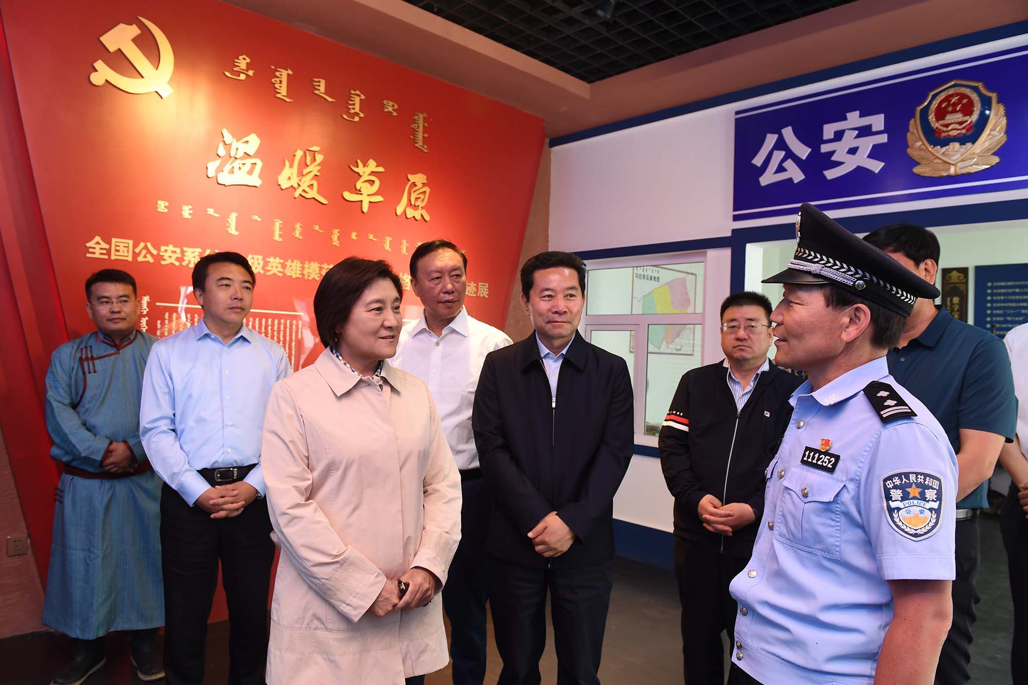 烏拉特后旗公安局潮格溫都爾鎮(zhèn)派出所民警寶音德力格爾被授予“全國公安系統(tǒng)一級(jí)英雄模范”榮譽(yù)稱號(hào)。布小林走進(jìn)寶音德力格爾事跡館參觀,與寶音德力格爾親切交談,對他舍小家顧大家、為人民群眾無私奉獻(xiàn)的精神給予充分肯定。