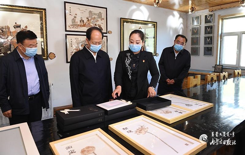 8月10日,自治區(qū)黨委書記、人大常委會(huì)主任石泰峰來到興安盟阿爾山市白狼鎮(zhèn)林俗文化產(chǎn)業(yè)發(fā)展有限公司,了解樹皮畫產(chǎn)業(yè)助力脫貧和非遺項(xiàng)目傳承發(fā)展情況。內(nèi)蒙古日?qǐng)?bào)記者 袁永紅 攝
