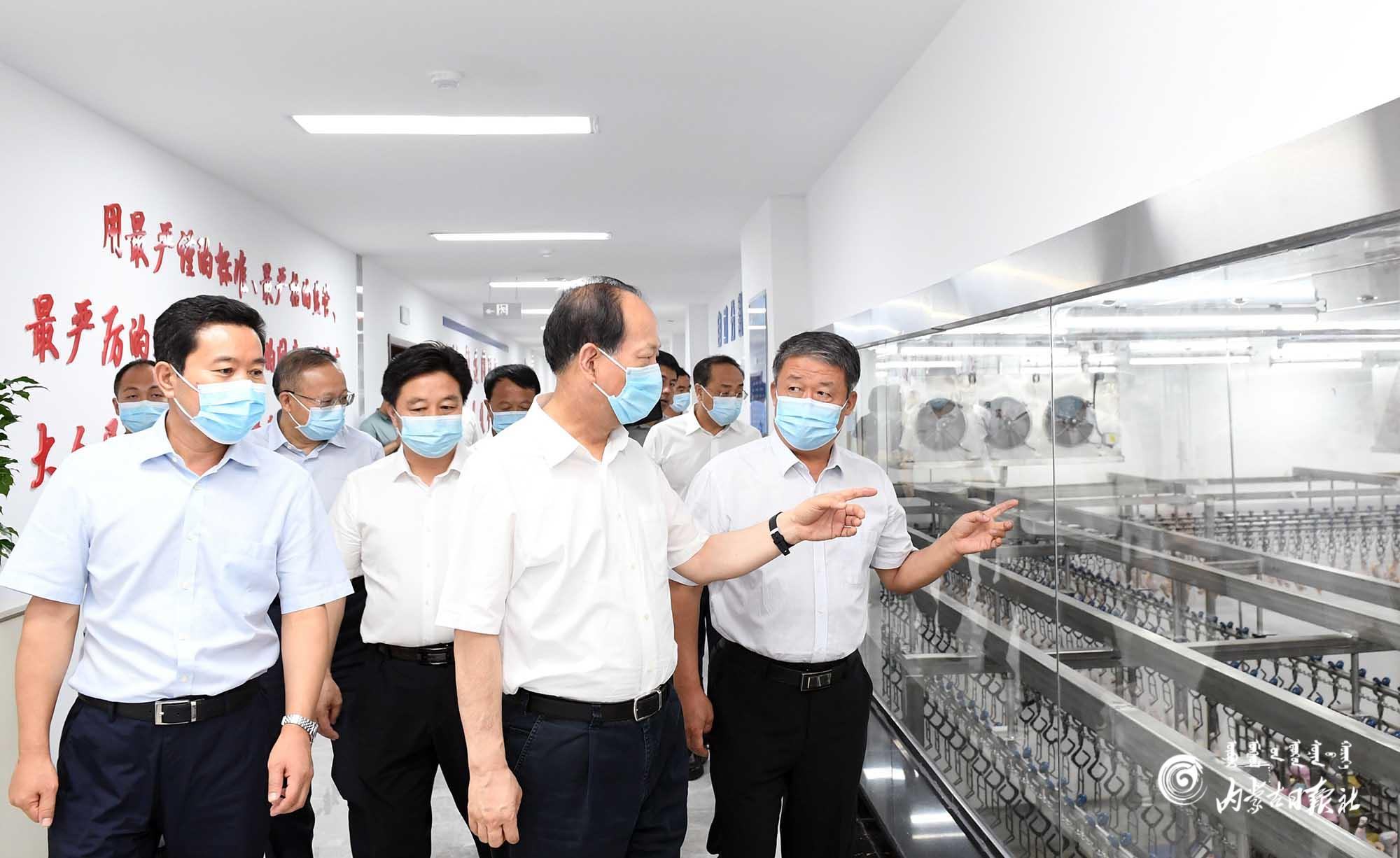 8月18日,自治區(qū)黨委書(shū)記、人大常委會(huì)主任石泰峰來(lái)到巴彥淖爾市五原縣潤(rùn)海源8000萬(wàn)只肉雞屠宰加工廠,了解經(jīng)營(yíng)情況。內(nèi)蒙古日?qǐng)?bào)記者 袁永紅 攝
