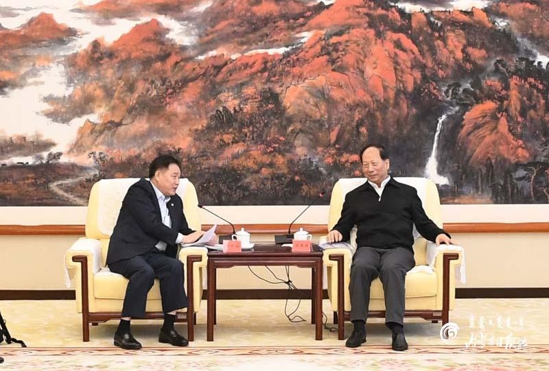 9月4日,自治區(qū)黨委書記、人大常委會(huì)主任石泰峰在呼和浩特會(huì)見協(xié)鑫集團(tuán)董事長朱共山。內(nèi)蒙古日?qǐng)?bào)社融媒體記者袁永紅攝