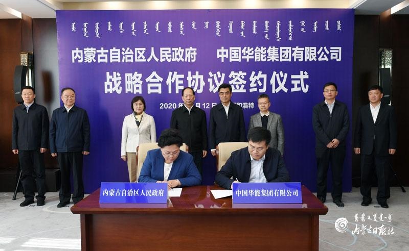 10月12日,內(nèi)蒙古自治區(qū)人民政府與中國華能集團有限公司在呼和浩特簽署戰(zhàn)略合作協(xié)議。自治區(qū)黨委書記、人大常委會主任石泰峰,自治區(qū)黨委副書記、自治區(qū)主席布小林,中國華能集團有限公司董事長舒印彪見證簽約。