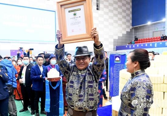 上海大世界基尼斯總部頒證官胡杰,對鑲黃旗乳香飄乳業(yè)有限公司制作的“浩乳德(拼接)——禮儀奶酪盤”進(jìn)行了現(xiàn)場認(rèn)證,并頒發(fā)“大世界基尼斯之最”證書。