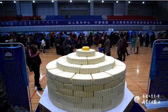 獲得“大世界基尼斯之最”的“浩乳德(拼接)——禮儀奶酪盤”。內(nèi)蒙古日報(bào)記者 韓卿立 攝
