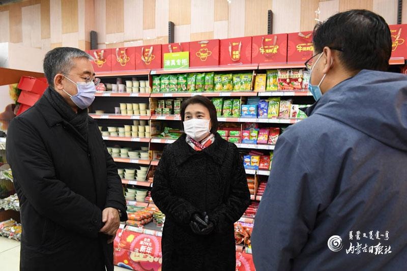1月17日上午,自治區(qū)黨委副書(shū)記、自治區(qū)主席布小林在呼和浩特市維多利喜悅匯超市檢查生活物資供應(yīng)、食品安全和疫情防控情況。內(nèi)蒙古日?qǐng)?bào)記者 韓卿立 攝