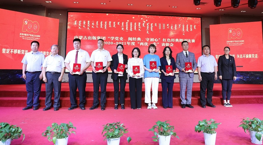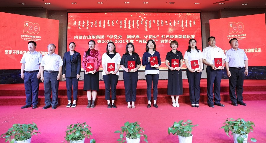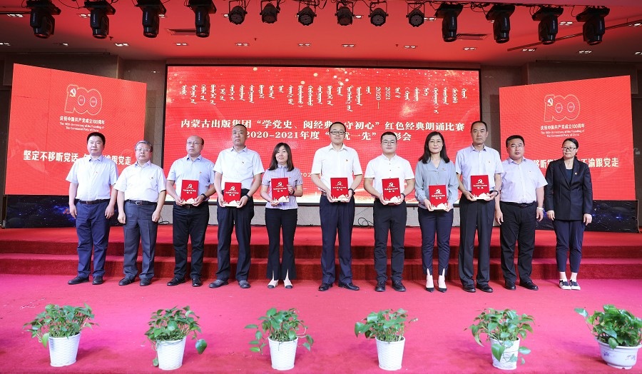 6月26日,內(nèi)蒙古出版集團(tuán)在維力斯大酒店舉辦“學(xué)黨史、閱經(jīng)典、守初心”紅色經(jīng)典朗誦比賽暨2020—2021年度“兩優(yōu)一先”表彰大會。內(nèi)蒙古出版集團(tuán)黨委書記、董事長雙龍,黨委副書記王富,黨委委員、副總經(jīng)理扎拉根,副總經(jīng)理王曉玲,總編輯助理黃滔,總經(jīng)理助理白玉峰等領(lǐng)導(dǎo)出席會議。