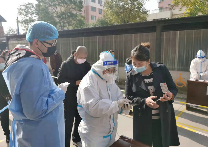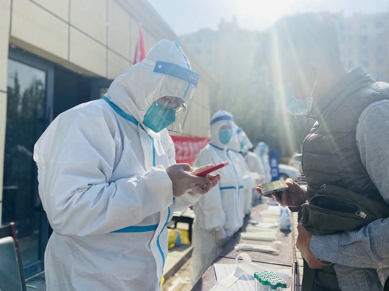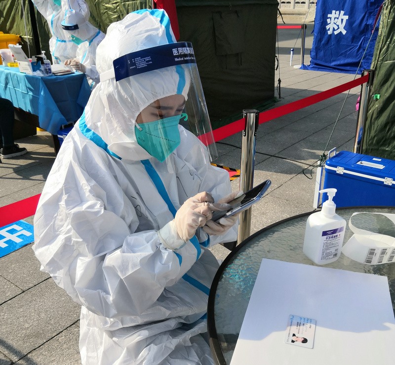 “昨天分配的任務(wù)是信息采集,因?yàn)榈诙喓怂釞z測(cè)要使用新的采集系統(tǒng),所以今天早晨7:00到崗后,大家開始學(xué)習(xí)信息采集系統(tǒng)的使用。信息采集不能出任何差錯(cuò),每一個(gè)信息采集員都很緊張,謹(jǐn)慎操作每一步。”在呼和浩特市玉泉區(qū)大召社區(qū)核酸檢測(cè)點(diǎn)參加志愿服務(wù)的張華媛說,8:00準(zhǔn)時(shí)開始第二次核酸檢測(cè),直到下午2:00換崗,連續(xù)6小時(shí)緊張謹(jǐn)慎的信息采集,中途沒有休息過,整個(gè)身體感覺有點(diǎn)僵了。雖然很累,但是能成為抗疫戰(zhàn)士中的一員,和醫(yī)護(hù)人員、社區(qū)工作者及其他志愿者一起為呼和浩特抗疫貢獻(xiàn)自己的一份力,是一件非常有意義的事。